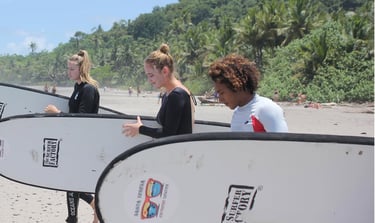 Santa Teresa is famous for consistent waves year-round. Playa Carmen and Playa Hermosa are ideal for beginners, while Playa Santa Teresa offers advanced breaks.
