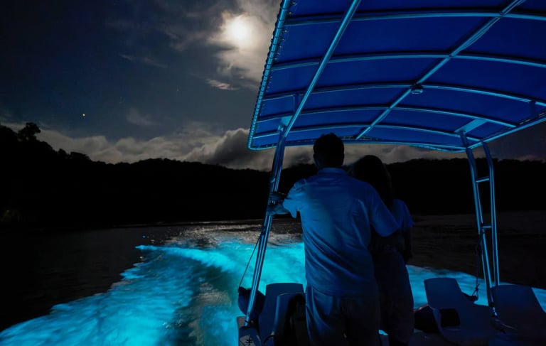 Night tours to Paquera and Curú reveal glowing waters caused by bioluminescent plankton. Kayak or boat trips make this a once in a lifetime experience.